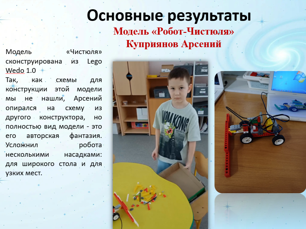- Сборка базовых и сложных конструкций с использованием конструктора Lego WEDO и других компонентов.